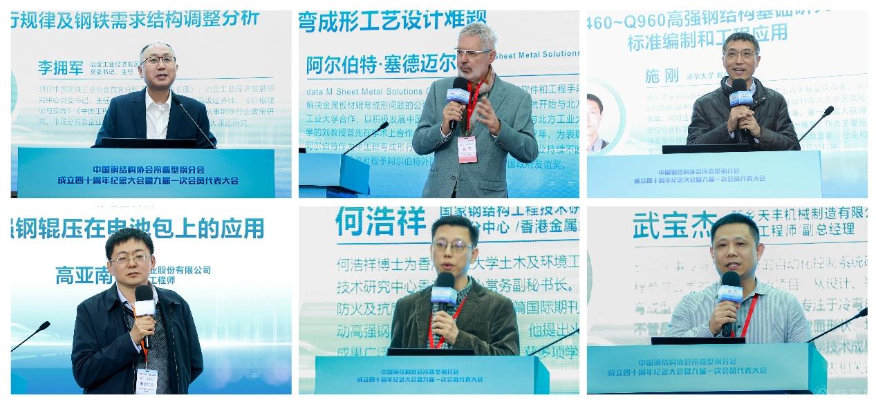 會議同期舉行了冷彎型鋼前沿技術學術會議。冶金工業經濟發展研究中心黨委書記、主任李擁軍、dataMSheetMetalSolutionsGmbH董事長AlbertSedlmaier、清華大學教授施剛、凌云工業股份有限公司高級工程師高亞南、香港理工大學研究員何浩祥、新鄉天豐機械制造有限公司副總經理武寶杰等分別就鋼鐵需求結構、輥彎成形仿真技術、高強鋼結構基礎研究和工程應用、新能源汽車電池包、高強冷彎型鋼殘余應力、冷彎生產線智能化等行業熱點展開深入交流。