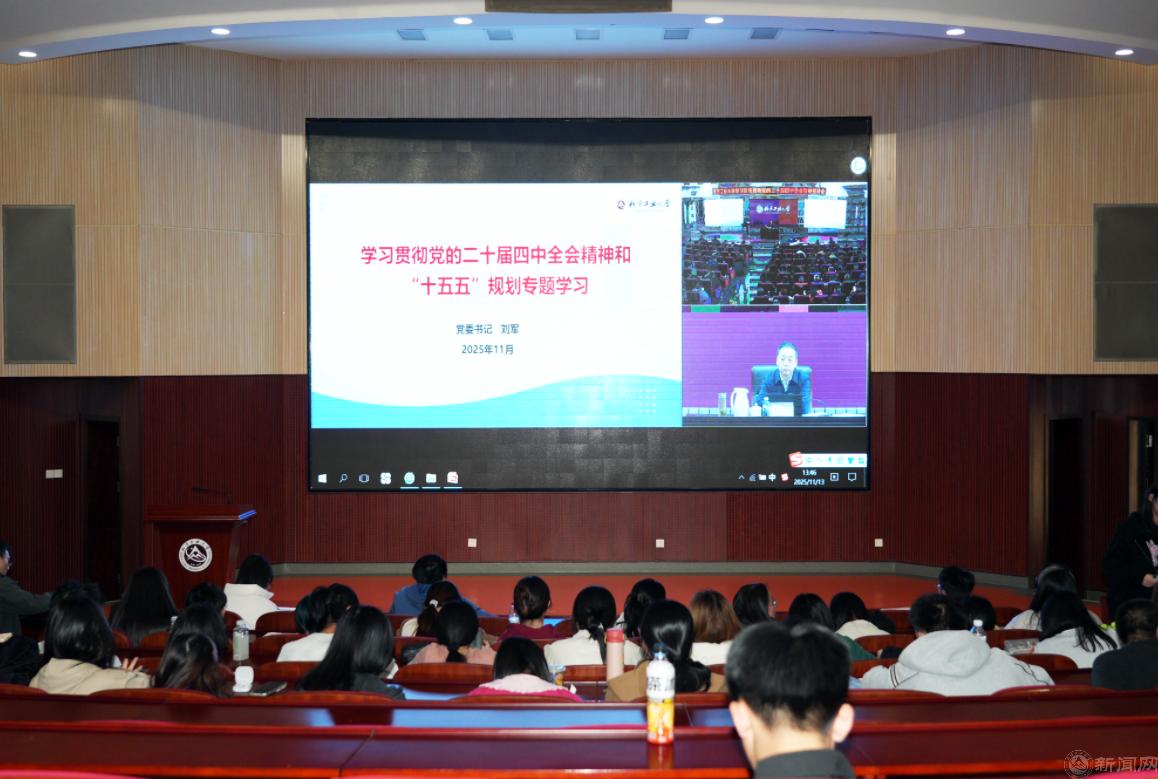 11月13日下午,學(xué)校在廣學(xué)樓報(bào)告廳舉行學(xué)習(xí)宣傳貫徹黨的二十屆四中全會(huì)精神宣講報(bào)告會(huì),黨委書記劉軍作學(xué)習(xí)輔導(dǎo)報(bào)告。全體校領(lǐng)導(dǎo)、中層干部,各二級(jí)單位黨委理論學(xué)習(xí)中心組成員、系主任、黨支部書記,學(xué)生輔導(dǎo)員、思政課教師和學(xué)生代表等360余人現(xiàn)場(chǎng)參加,第三十六期黨課培訓(xùn)班學(xué)員180余人在文化會(huì)堂分會(huì)場(chǎng)參加學(xué)習(xí)。黨委副書記史貞軍主持報(bào)告會(huì)。