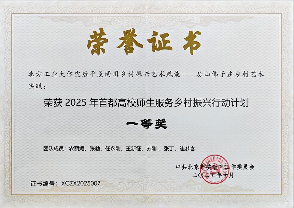 近日,2025年首都高校師生服務鄉村振興行動計劃優秀成果評審結果公布,我校申報的三個項目全部入選,教師團隊項目“災后平急兩用鄉村振興藝術賦能——房山佛子莊鄉村藝術實踐”獲評一等獎,學生團隊項目“低碳技術賦能綠色鄉村建設的實踐探索——未來鄉村綠能計劃”和“‘智能村居·科技生活’——科技賦能鄉村振興行動”分別獲評三等獎和優秀獎。