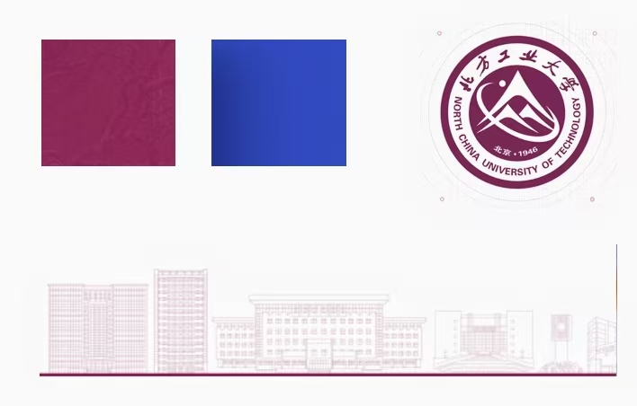 1.頁面整體采用長滾式布局,分為8個全屏展示,以“工大紫”為主色調,體現學校“興工報國”文化傳統;以藍色為輔色,突出工科院校的特征;融入校徽、輔助圖形、點、線、校園建筑等元素,彰顯北方工大特色。