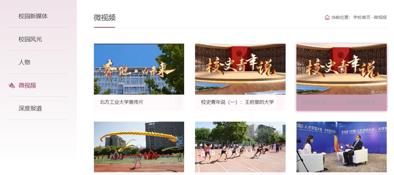2.BANNER圖以全屏方式展示,新增動態視頻功能,高清大圖與動態視頻交替輪播,沉浸式感受北方工大辦學特色。