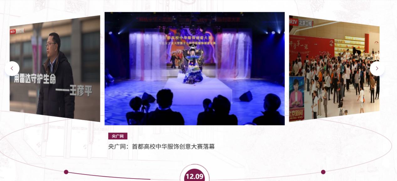 “媒體工大”欄目以時間軸為核心視覺元素,采用左右輪播形式,視覺上以旋轉的方式展示。