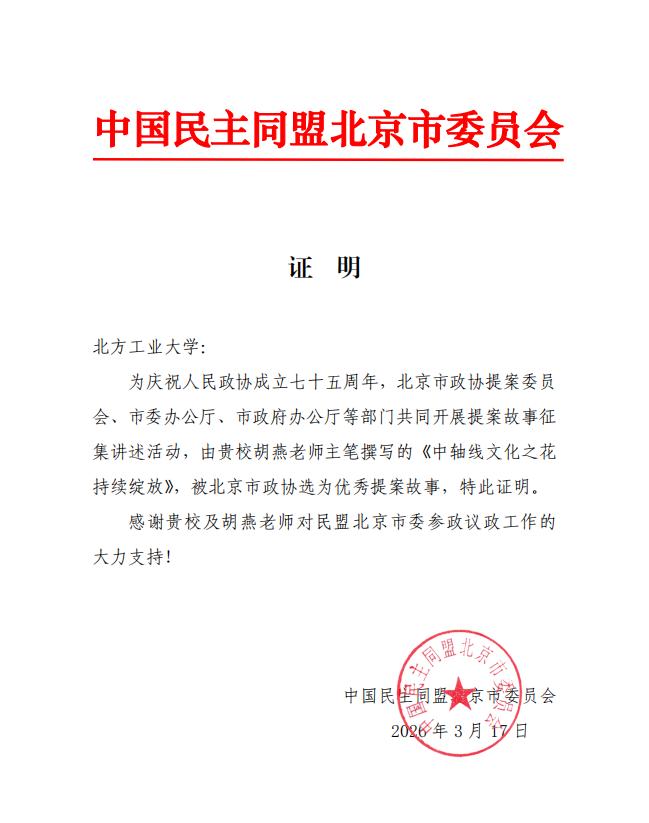 為慶祝人民政協成立七十五周年,北京市政協提案委員會、市委辦公廳、市政府辦公廳等部門共同開展提案故事征集講述活動,近日,征集活動結果公布,由我校北京城市治理研究基地學者、建筑與藝術學院胡燕老師主筆撰寫的《中軸線文化之花持續綻放》,被北京市政協選為十大優秀提案故事。
