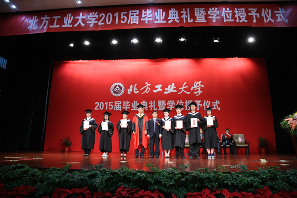 在學(xué)位授予儀式上,王曉純校長為獲得學(xué)士學(xué)位的2015屆畢業(yè)生逐一撥正流蘇、授予學(xué)位并合影留念。與會領(lǐng)導(dǎo)、老師、家長共同見證了這一莊嚴(yán)的時刻。