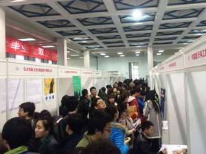 2015年3月17日下午,我校2015年首場畢業生校園綜合雙選會在體育館一層舉行,中商集團經濟合作有限公司、廈門國際銀行股份有限公司、中國航天科工集團第二研究院二O六所、大唐電信科技股份有限公司等75家單位參加了雙選會,我校2015屆千余名畢業生走進招聘現場求職。