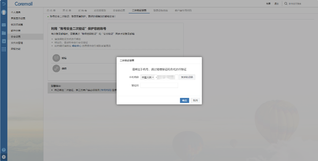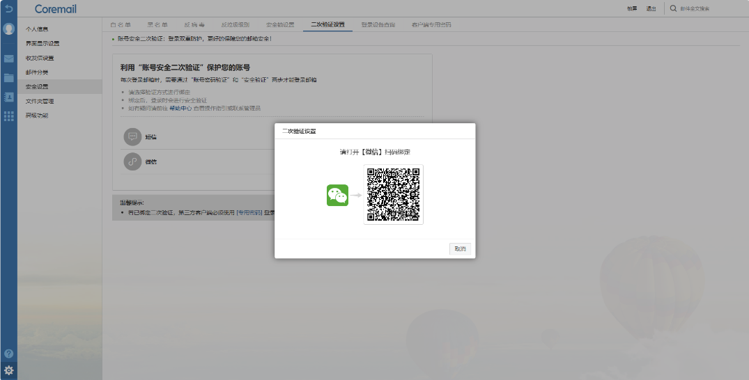 2.操作路徑:登陸郵箱網頁端→【安全設置】→【二次驗證設置】。