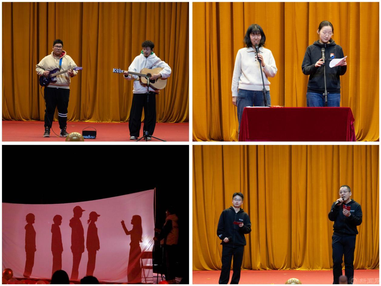 整場晚會以 “新朋相聚?共啟華章”“以夢為馬?不負韶華”“同心致遠?共赴山海” 三個篇章層層鋪展,師生同臺獻藝、各展所長,精彩節目輪番上演,現場掌聲雷動、氣氛熱烈高漲。