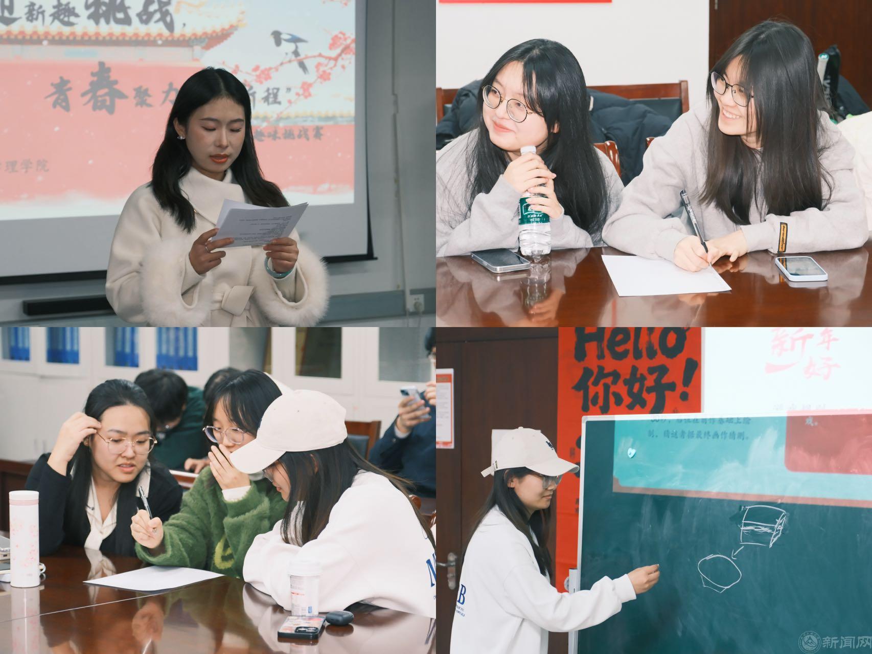 本次活動以“迎新年、聚青春、共奮進”為主題,精心設計了“新年拼詞”“新年畫卷猜猜猜”“新年曲庫大師”三大趣味環節。各環節緊扣新年文化內涵,既有蘊含美好祝愿的詞匯創作,也有描繪傳統習俗的即興繪畫,更有耳熟能詳的佳節旋律傳唱。同學們在互動中沉浸體驗元旦的喜慶與溫暖,進一步感受到中華優秀傳統文化的魅力。活動現場氣氛活躍,大家踴躍參與、配合默契,每一次搶答、每一次協作都洋溢著青春的熱情,歡聲笑語中滿載對新一年的向往與期待。