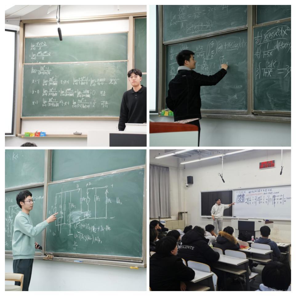 多位主講志愿者結(jié)合自身學習經(jīng)驗與備考心得,圍繞學科核心知識點展開系統(tǒng)講解。期中階段,呂榮澤聚焦高數(shù)期中考試重點,梳理核心考點并分享備考方法,為同學們夯實基礎(chǔ);期末階段,翟志豪聚焦高數(shù)期末高頻考點,梳理核心模塊并分享實用解題技巧;陳宇龍針對模電抽象難點,解讀關(guān)鍵章節(jié)知識點邏輯與解題方法;李昭陽則面向兩年制學生,梳理線代核心內(nèi)容關(guān)聯(lián)脈絡(luò),強化解題規(guī)范。講解結(jié)束后,主講志愿者還與現(xiàn)場同學展開互動答疑,針對大家提出的個性化問題逐一解答,現(xiàn)場學習氛圍濃厚。