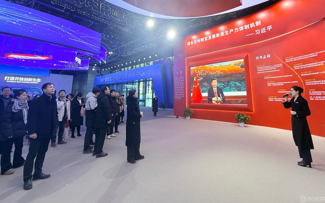 作為全國(guó)愛(ài)國(guó)主義教育基地和北京市重要科普基地,該展示中心是彰顯我國(guó)自主創(chuàng)新成就的核心窗口。自2011年運(yùn)行以來(lái)歷經(jīng)多次展陳升級(jí),2025年3月完成改造后的常設(shè)展以“新質(zhì)生產(chǎn)力看北京”為主題,1萬(wàn)平方米展區(qū)內(nèi)集中呈現(xiàn)了350多家單位的490多項(xiàng)前沿技術(shù)與產(chǎn)品,系統(tǒng)勾勒出中關(guān)村從“創(chuàng)新試驗(yàn)田”到“全球科創(chuàng)中心”的蛻變軌跡。在講解員引導(dǎo)下,黨員教師們開(kāi)啟了一場(chǎng)探索之旅,沉浸式感受科技賦能發(fā)展的重要引領(lǐng)作用。