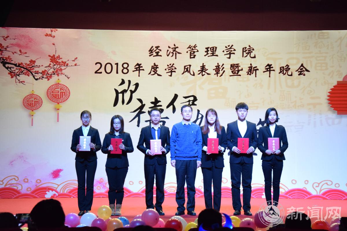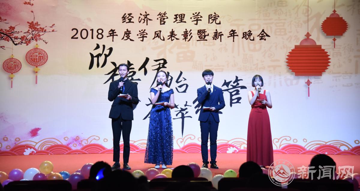 12月18日晚,經(jīng)濟(jì)管理學(xué)院在圖書(shū)館報(bào)告廳舉辦“欣禧伊始 薈萃經(jīng)管”2018年度學(xué)風(fēng)表彰暨新年晚會(huì)。學(xué)生工作部部長(zhǎng)高國(guó)偉、校團(tuán)委書(shū)記何有華、學(xué)生工作部副部長(zhǎng)趙帥、經(jīng)濟(jì)管理學(xué)院全體領(lǐng)導(dǎo)班子成員、各系主任、班導(dǎo)師、輔導(dǎo)員及600余名同學(xué)共同參加了本次晚會(huì)。