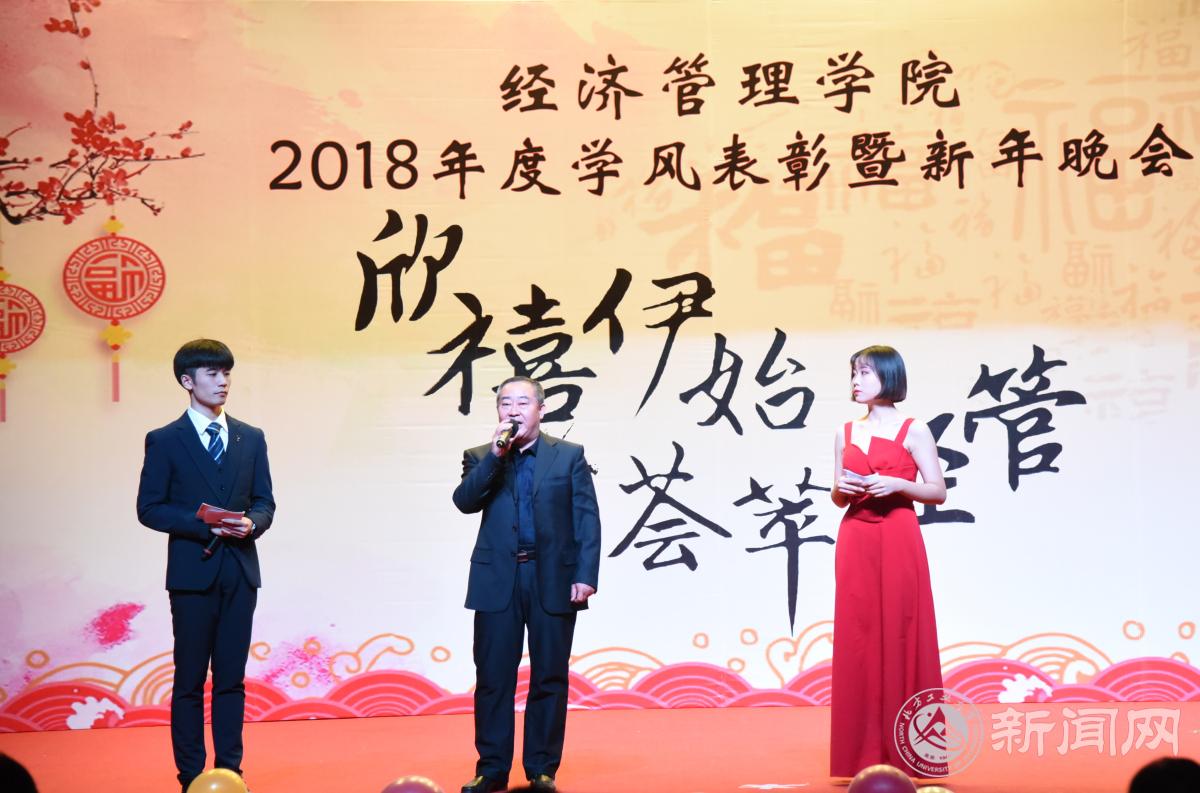 晚會(huì)現(xiàn)場(chǎng),院長(zhǎng)趙繼新老師向?qū)W院全體師生送出了新年寄語(yǔ),他對(duì)大家一年來(lái)的表現(xiàn)給予了肯定,表示大家在學(xué)校黨委的正確領(lǐng)導(dǎo)下,經(jīng)歷了忙碌,也收獲了成績(jī)。成績(jī)的取得離不開(kāi)個(gè)人的堅(jiān)持、更離不開(kāi)團(tuán)隊(duì)的協(xié)作。趙老師指出,2018年正值國(guó)家改革開(kāi)放40周年,祖國(guó)的快速發(fā)展,給我們提供了機(jī)遇,更帶給我們挑戰(zhàn),他希望同學(xué)們都能將個(gè)人利益同國(guó)家發(fā)展相結(jié)合,努力成長(zhǎng)為棟梁之才,永葆青春活力和熱情,發(fā)揮“經(jīng)管人”優(yōu)良傳統(tǒng),持之不懈、努力拼搏,為國(guó)家建設(shè)貢獻(xiàn)青春力量。