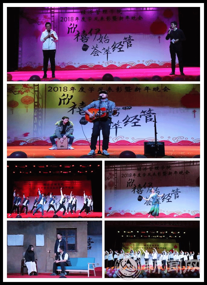 此次晚會(huì)圍繞著同學(xué)們2018年的三個(gè)關(guān)鍵詞——“堅(jiān)持、轉(zhuǎn)換、夢(mèng)想”展開(kāi),大家通過(guò)自編自導(dǎo)自演的節(jié)目,回顧了2018年的過(guò)往,同時(shí)也對(duì)2019年充滿(mǎn)了期許和展望。學(xué)院輔導(dǎo)員鄧鑫、王昕宇以及勵(lì)學(xué)樓管理員李海濤的獻(xiàn)唱,更是將整場(chǎng)晚會(huì)推向了高潮,展現(xiàn)出了學(xué)院師生同樂(lè)賀新年的溫馨畫(huà)面。歌曲、舞蹈、小品等節(jié)目,也充分展現(xiàn)了經(jīng)管人勤奮創(chuàng)新、陽(yáng)光向上、敬業(yè)樂(lè)群、善于表達(dá)的氣質(zhì)品質(zhì)。