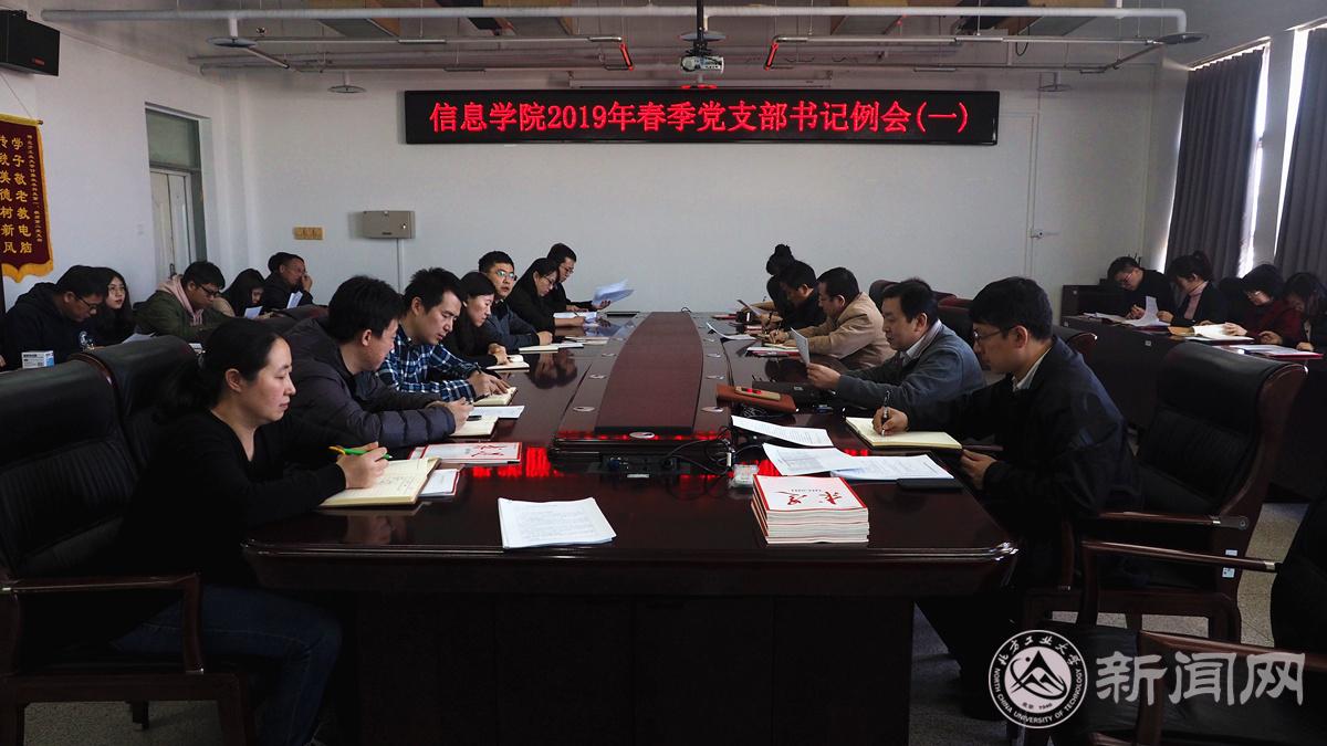 為貫徹落實學校2019年工作部署,明確學院黨委新學期的工作要點,保證基層黨建各項工作有序開展,3月5日,信息學院黨委召開了2019年首次支部書記例會。黨委辦公室成員、各黨支部書記參加,會議由學院黨委書記劉文楷主持。
