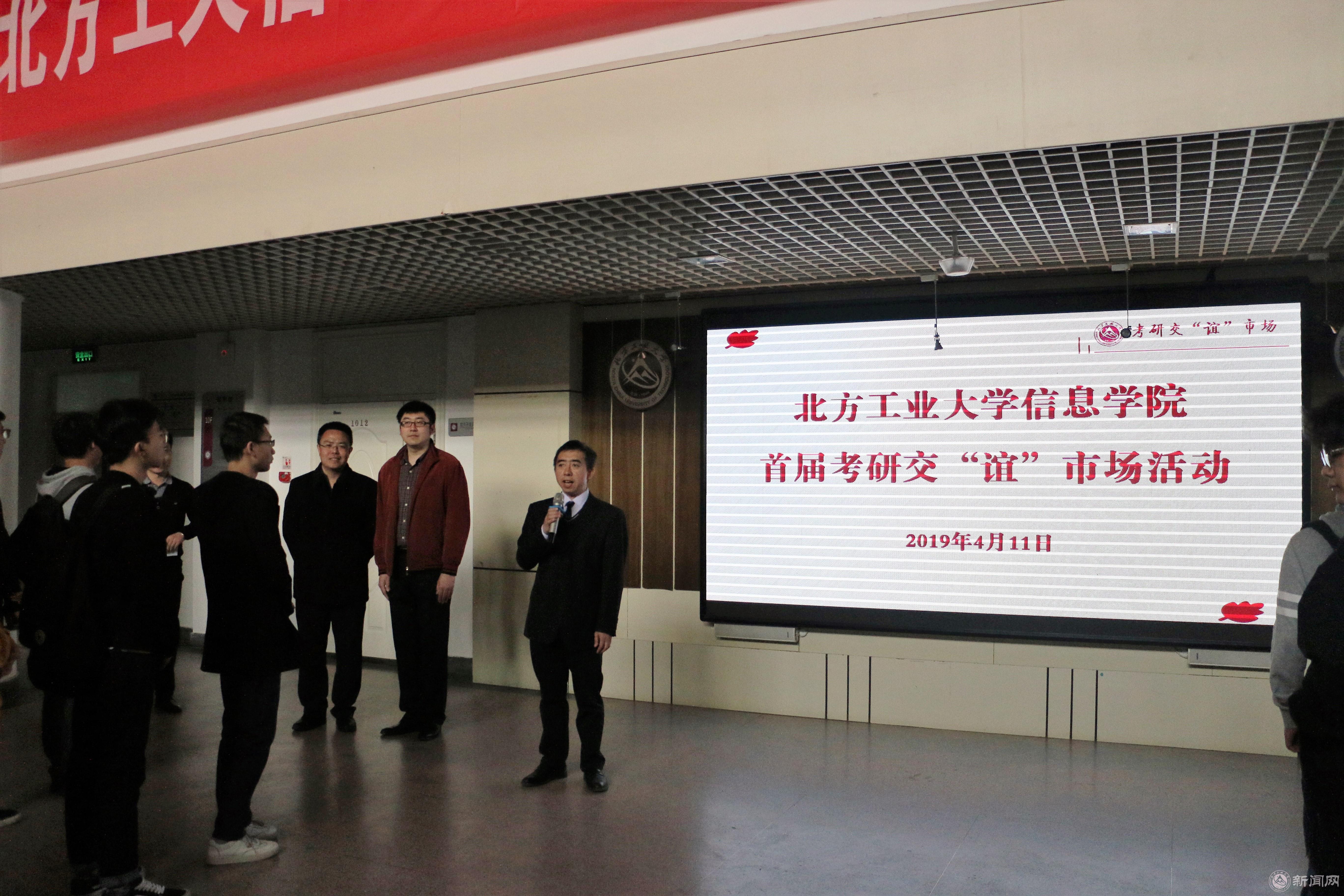 活動伊始,院長馬禮簡要總結了學院近年的考研成績,分析了當前的考研形勢,鼓勵同學們要樹立信心、梳理信息、整合資源,做好考研經驗的交流和傳承,為備戰2020年考研做好充分準備。隨著馬禮院長宣布信息學院首屆考研交“誼”市場活動開幕,兩條包含激勵的條幅從天而降:“考研贏在起跑線——第一志愿院校的選擇;考研輸在不堅持——第四科目考試的放棄”。