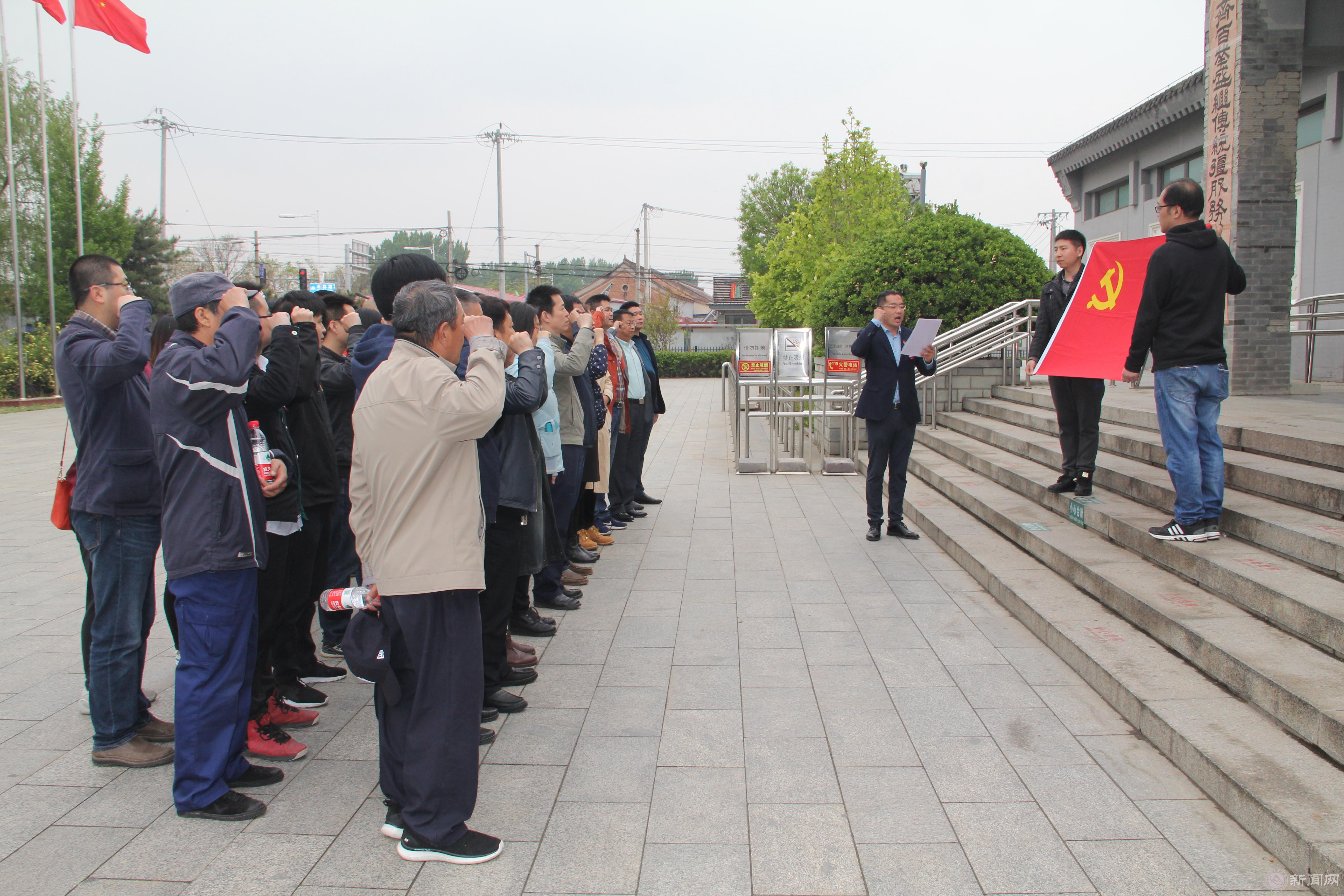 在焦莊戶地道戰(zhàn)遺址紀念館前,組織全體黨員面向黨旗重溫入黨誓詞,銘記入黨的誓詞,對自己進行鞭策和激勵。