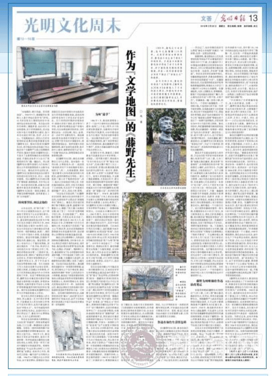 近日,我校中文系教師馮雷博士的文章《作為“文學地圖”的〈藤野先生〉》被“學習強國”全文轉(zhuǎn)載,原文于2019年3月29日以整版的形式發(fā)表在《光明日報》上(http://epaper.gmw.cn/gmrb/html/2019-03/29/nbs.D110000gmrb_13.htm)。