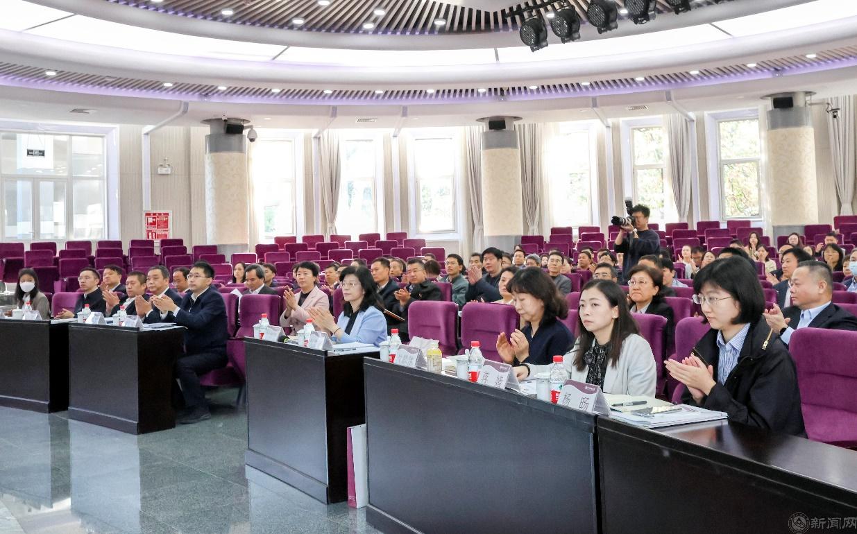 市委教育工委委員、市教委副主任柳長安,市教委二級巡視員張曉玲、市教委高等教育處處長劉霄、市教委高校學生處一級調研員沈聰偉,學校全體校領導等出席在學校廣學樓報告廳的線下會議。會議分兩個階段進行。第一階段會議由校黨委副書記、校長張立峰主持。