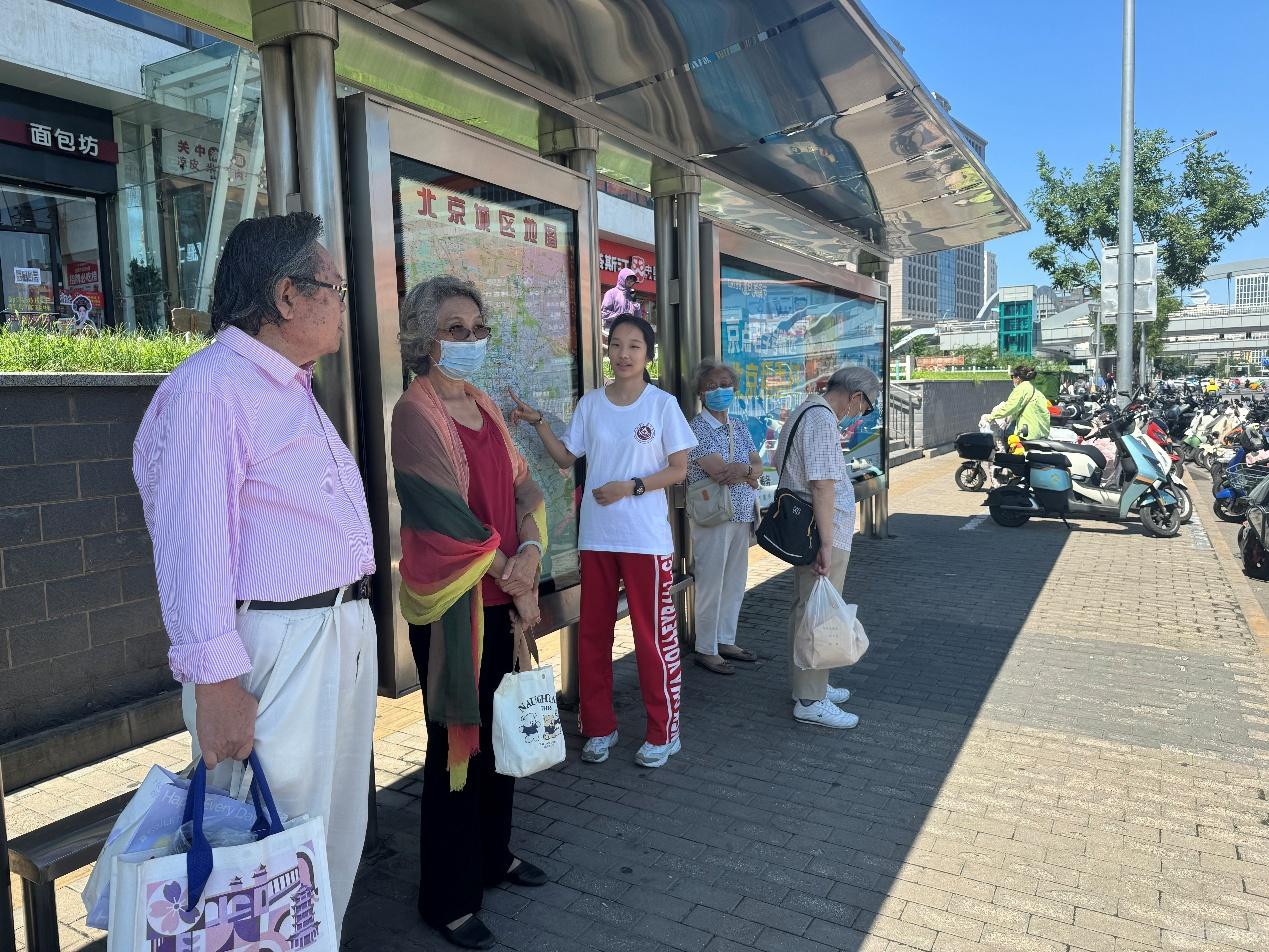 在圓明園東路公交站,實踐團開展了紅色故事快閃宣講,把紅色故事講給候車乘客:圓明園殘垣,銘記八國聯軍罄竹難書的暴行;中關村大街,回響鄧稼先“科技報國”的鏗鏘誓言。聽眾雖只數十,但每一次頷首、每一句“謝謝”都是對實踐團成員最好的肯定。宣講結束,成員們俯身擦拭站牌,留下潔凈與敬意。短暫停留,卻讓他們深知:歷史的接力棒已傳到青年手中,賡續紅色血脈,使命在肩。