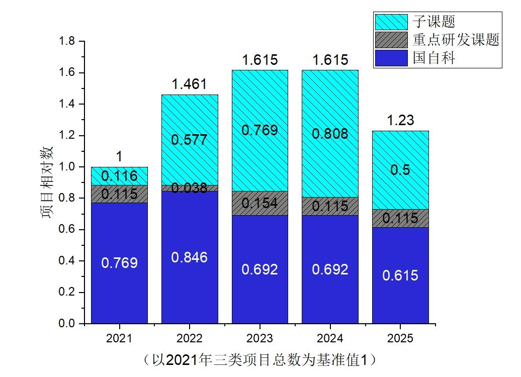 “十四五”期間,學校教師共承擔理工類國家級縱向課題(含重點研發計劃項目、課題、子課題、國家自然科學基金)186項,其中國家重點研發計劃項目2項,國家自然科學基金重點基金4項。我校教師主持申報獲批國家自然科學基金77項。
