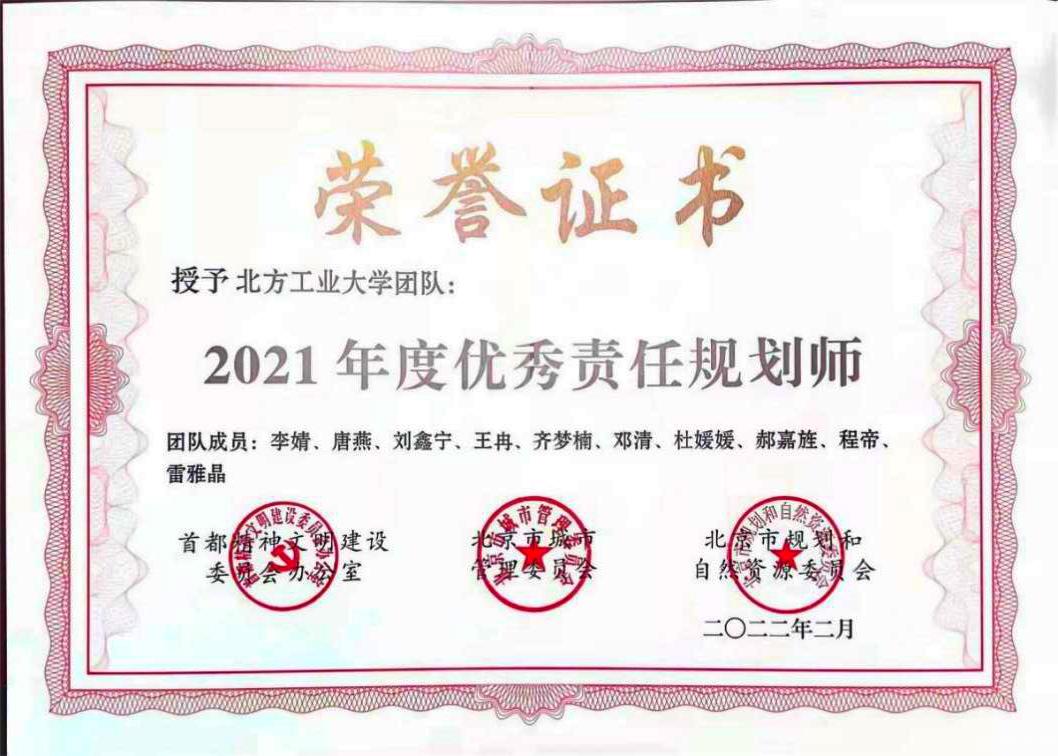 面向首都城市更新和規劃需求,12名教師在北京市石景山區、朝陽區、豐臺區、副中心四個行政區擔任街道責任規劃師,創建了“1+3”城市治理模式,將健康城市、韌性城市、智慧社區、精細化設計等理念付諸實踐,成果廣受好評,3個團隊獲得北京市規自委年終評優表彰,6人獲得“優秀責任規劃師”稱號。責任規劃師在石景山蘋果園街道的相關工作在全區考核排名第一,在朝陽區小關街道微空間改造項目獲得最佳方案等獎項。