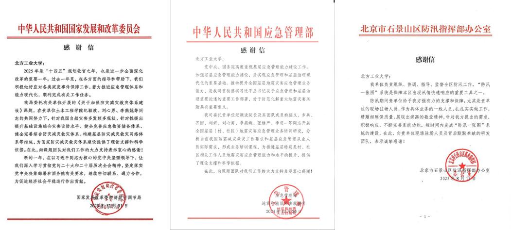 主動作為服務國家防災減災救災體系建設重大需求。“23·7”特大暴雨災害期間,學院派出技術團隊赴石景山區應急局完成“防汛一張圖”系統建設,災后派出技術團隊赴門頭溝區支撐災損評估和災后重建。依托學校新興風險院,聯合北京師范大學等合作伙伴承擔發改委、應急管理部、北京市城管委等政府部門委托的行業領域安全風險評估及防災減災救災體系建設等研究任務,為國家和北京防災減災救災體系建設做出了理論支撐貢獻。