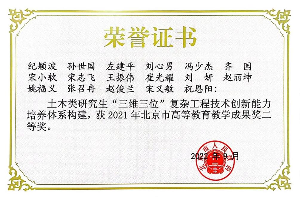 人才培養成效顯著。學院構建了研究生“三維三位”復雜工程技術創新能力培養體系,通過創新課程內容、重構實踐環節和以高水平科研項目作為研究支撐三個維度開展教學改革,達成對家國情懷、工程能力和技術創新能力三個方面的培養目標,人才培養成果獲北京市研究生教學成果獎二等獎。