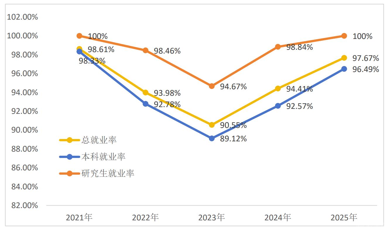 學(xué)生培養(yǎng)質(zhì)量成果亮眼,畢業(yè)生平均深造率高達(dá) 30%,本科生就業(yè)率穩(wěn)居 90% 以上、研究生連續(xù)三年就業(yè)率 100%,大批畢業(yè)生進(jìn)入頭部企業(yè)、重點院校及政府機(jī)關(guān)建功立業(yè)。