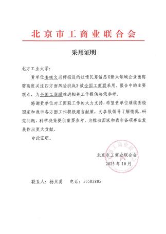 2025年,學(xué)院正式成為北京市工商聯(lián)參政議政單位,科研服務(wù)社會能力邁上新臺階。在服務(wù)企業(yè)高端管理人才培養(yǎng)方面,開展專項培訓(xùn)班多次;為企業(yè)提供咨詢服務(wù),成效顯著。